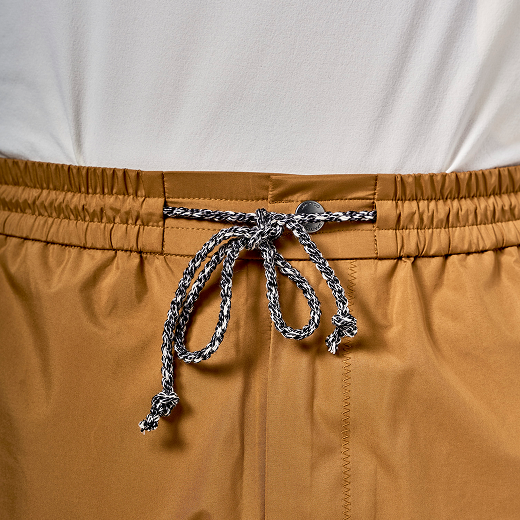 Compressed shorts in attached bag: 360G, 8.13CM³ volume, reduces travel burden. PULLEY™ drawstring foot opening, SHINDO waistband fit for various bodies.