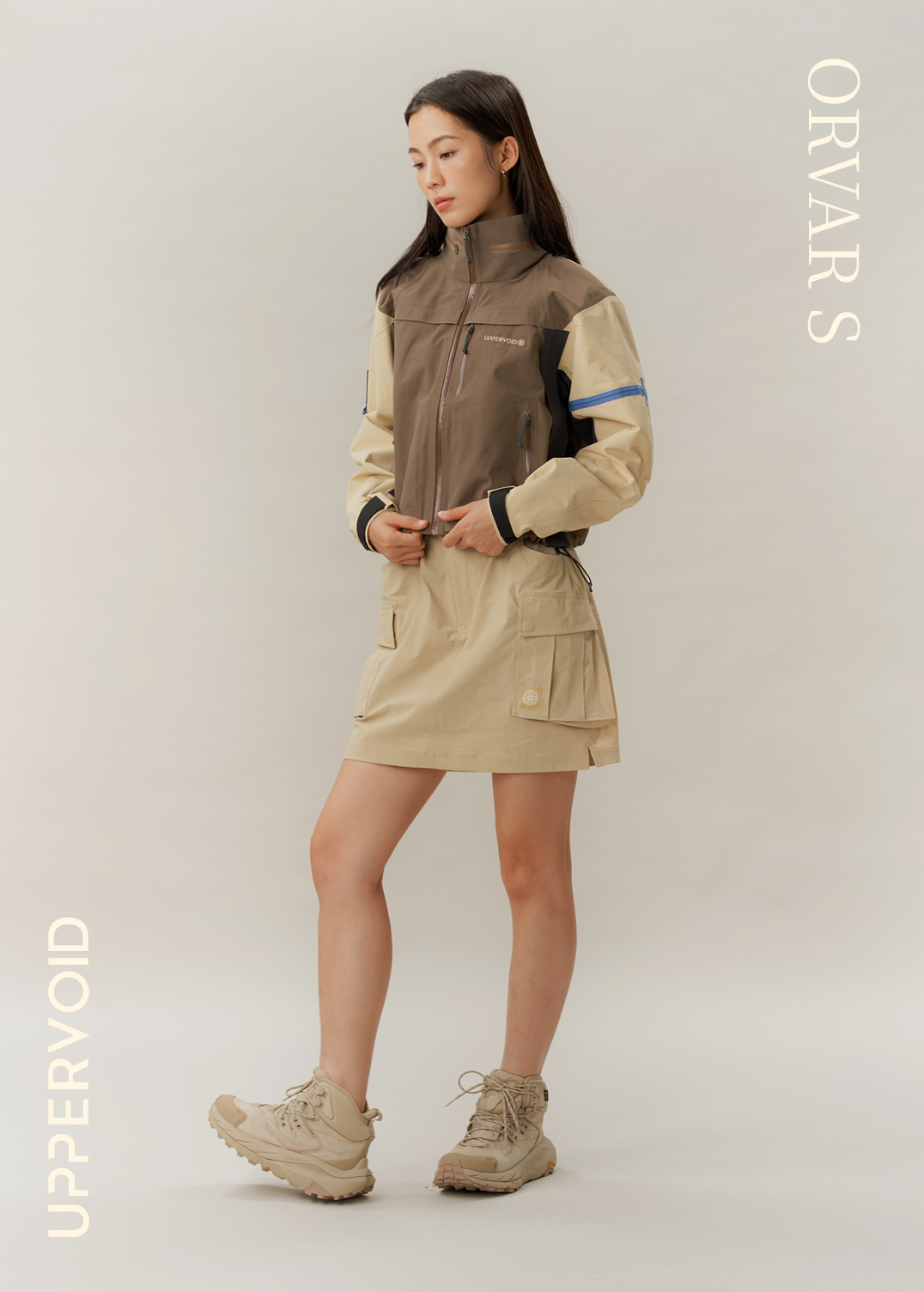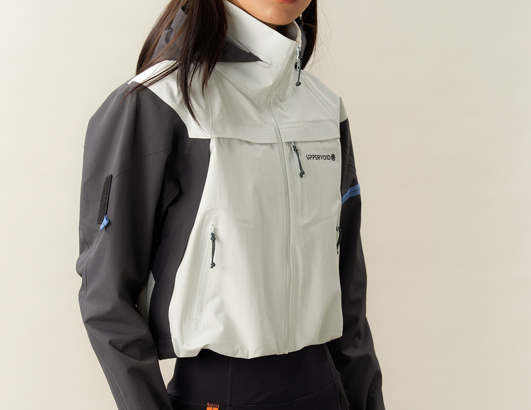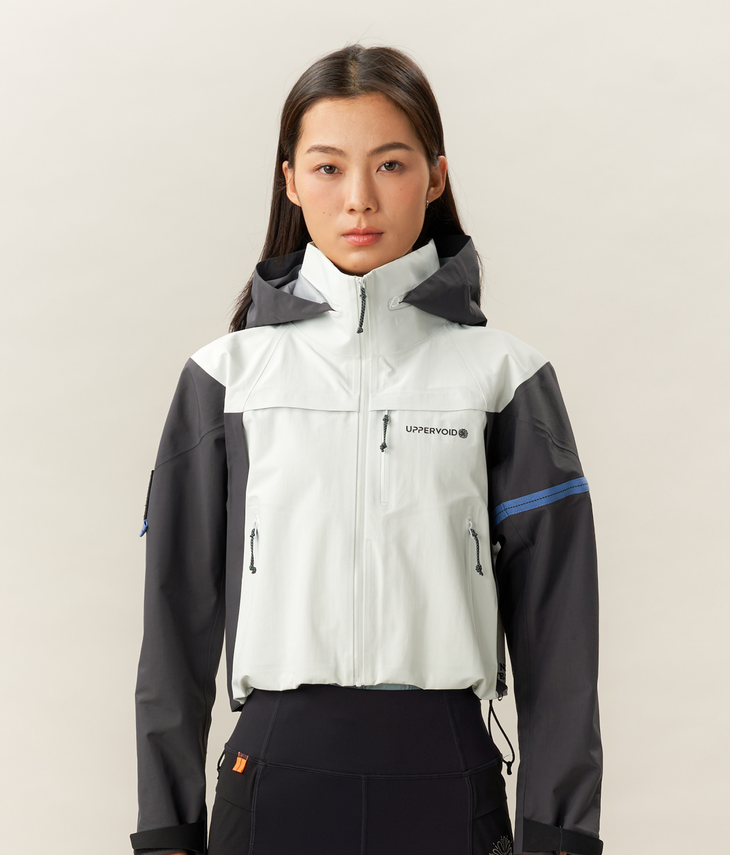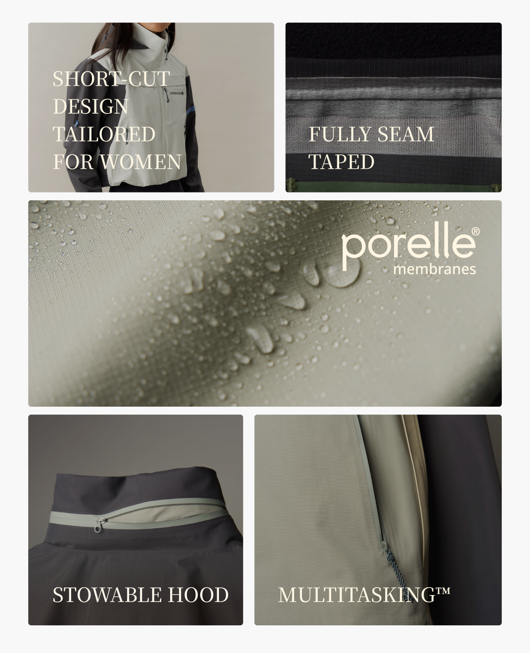 ORVAR S Assault Jacket features PORELLE® P620 MEMBRANES with 15,000MMH₂O waterproofing and 10,000G/M²/24H breathability. It includes a concealed waterproof hood for added versatility. The short-length design optimizes body proportions for women, providing a lightweight and flexible fit.