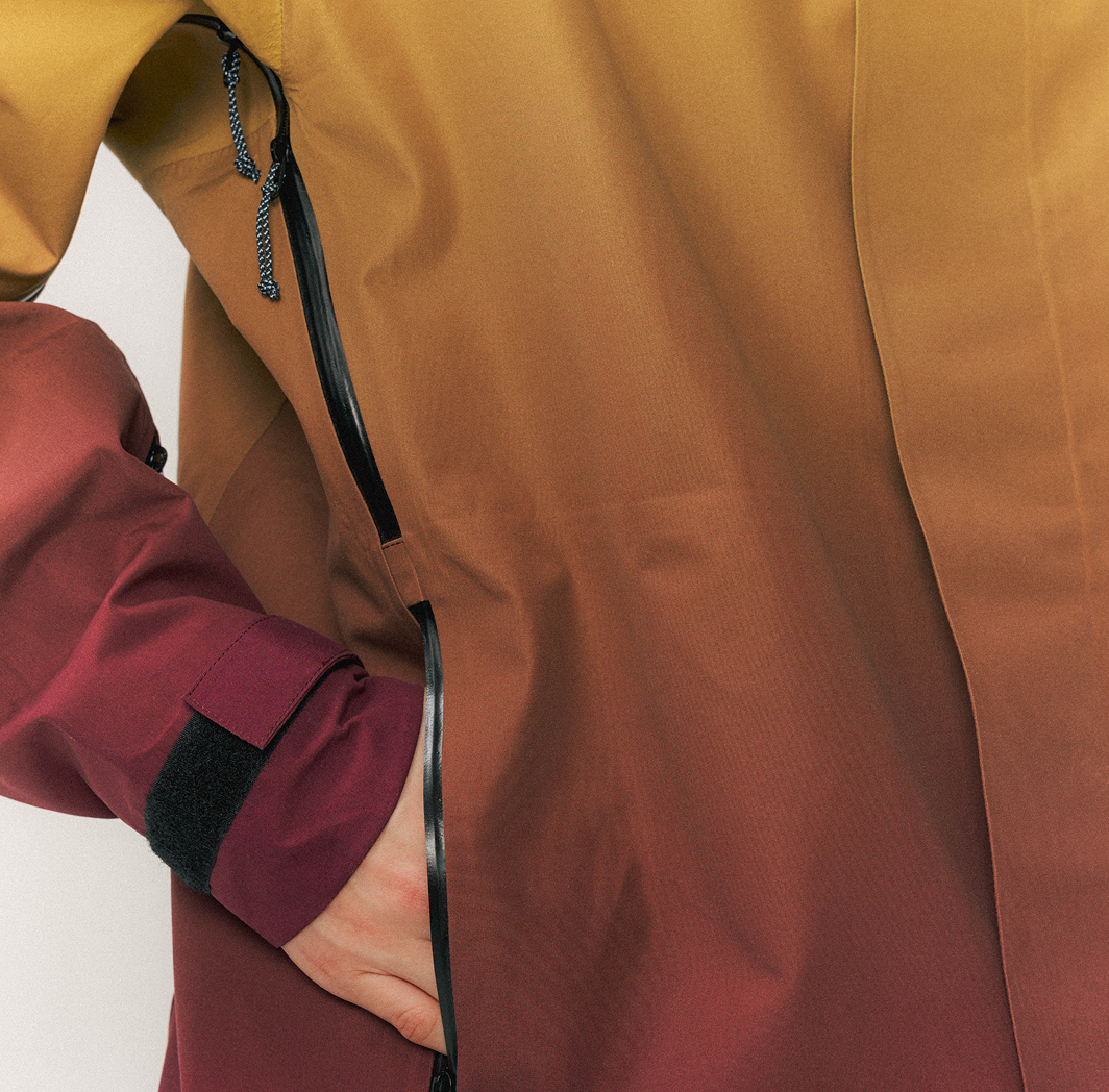 C2.5 GRD Hard Shell features VOIDTECH™ SHH 3-layer composite fabric, providing 10,000MMH₂O waterproofing, and 10,000G/M²/24H breathability. Utilizing a biomimetic microporous membrane with DWR treatment, it incorporates TRI-ZIP™ three-in-one waterproof zippers under the arms for windproof, waterproof, and breathable performance. With additional outdoor functionalities such as multi-tasking loading and adjustable elements, it caters to various wear requirements in different scenarios.Unique gradient color blocking showcases outdoor aesthetics.