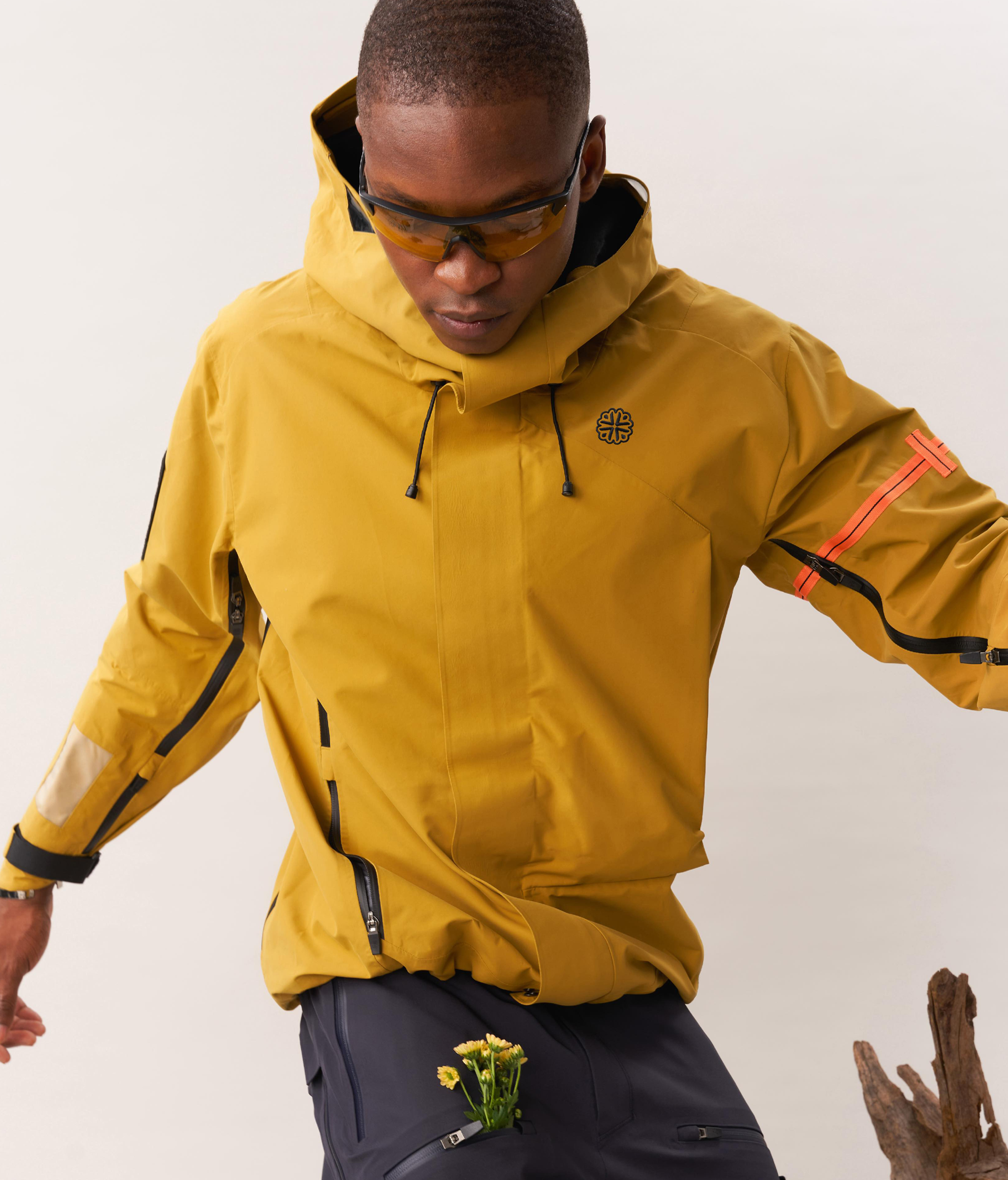Strong DWR treatment, TRI-ZIP™ triple-waterproof zipper, 3D DURAFLEX® fully adjustable waterproof hood, CANTILEVER™ extended hood brim, all-round rain and snow resistance.
