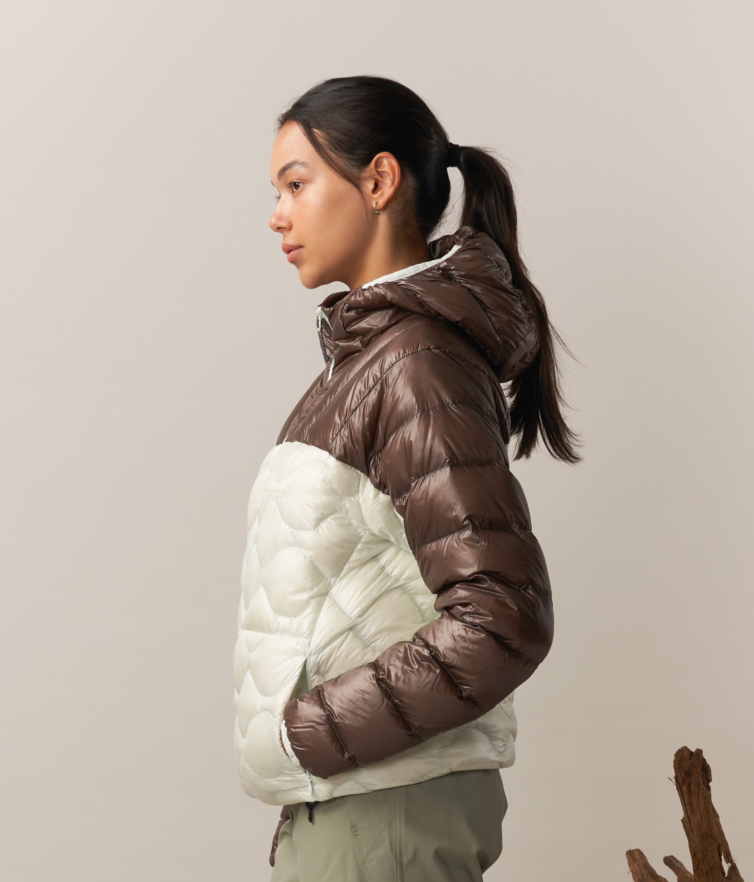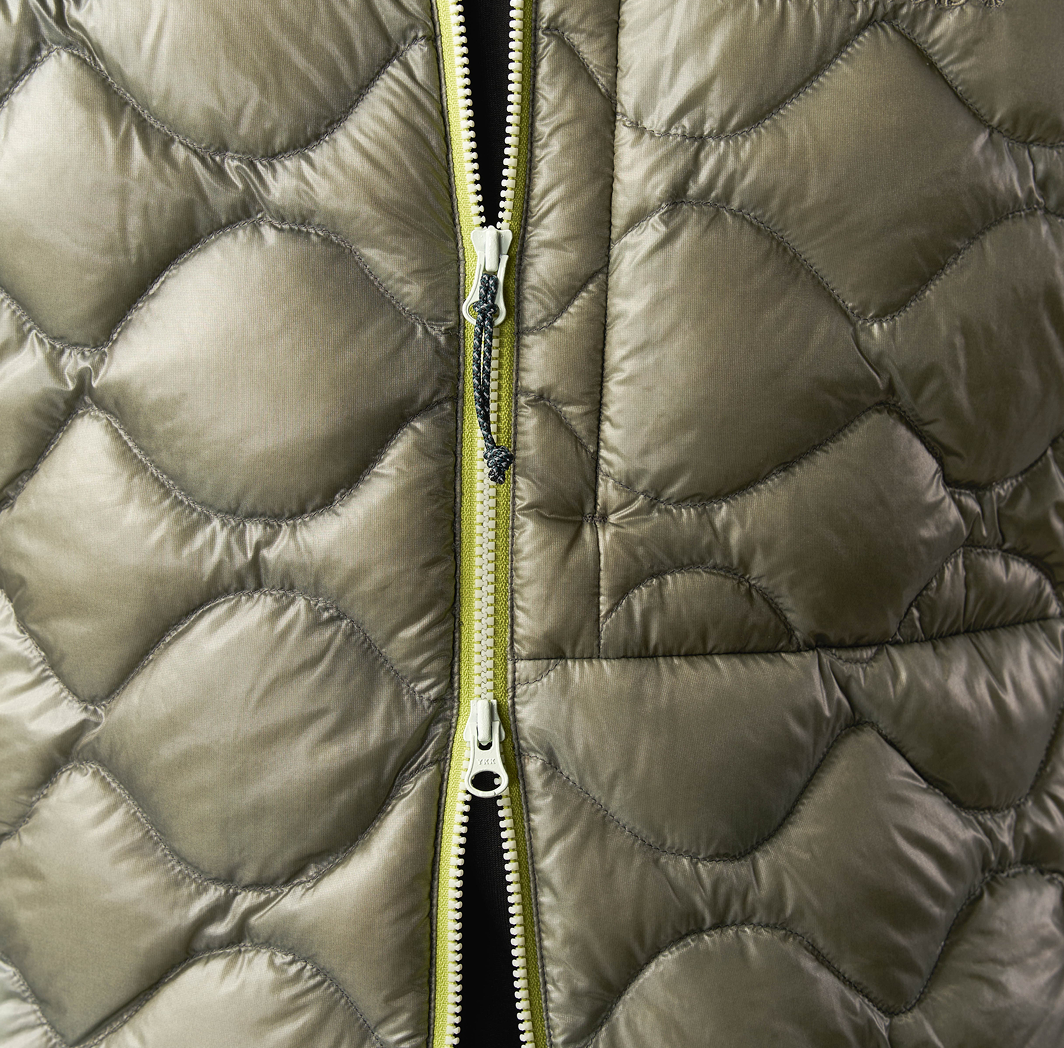Adopting PERTEX® QUANTUM ultralight fabric, it provides ultimate lightness and warmth with a fill of 900FP goose down. The MAZE™ special quilting design ensures an even distribution of down. Cuff elastic binding and PULLEY™ bottom drawcord adjustment offer a comfortable fit. The luminescent double zipper and MULTITASKING™ multi-pockets enhance practicality and safety. The INWARD™ self-storage function makes it easy to carry.