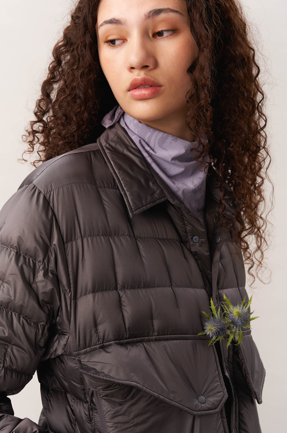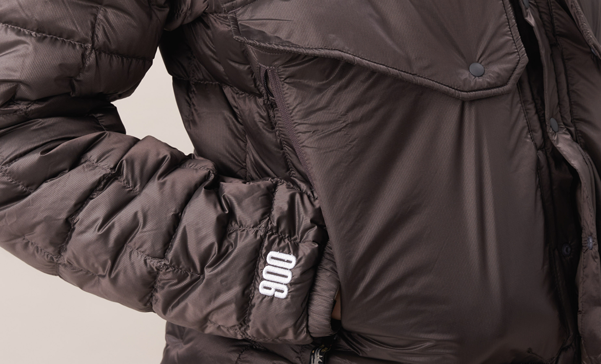 PERTEX® QUANTUM lightweight and waterproof, filled with 900-fill power white goose down for comprehensive warmth. Features a combined pocket and flap design, elastic cuffs to fit snugly around the wrists, and a maze stitch design to prevent down from falling out.