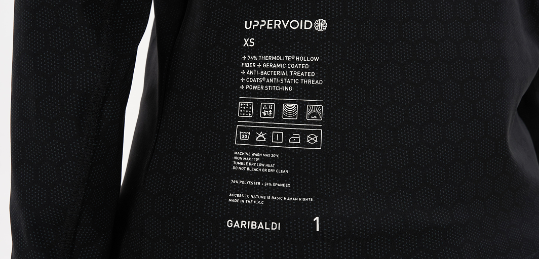 CERAMICH™ ceramic print, absorbs, stores, and reflects body heat. THERMOLITE® hollow yarn creates warmth.