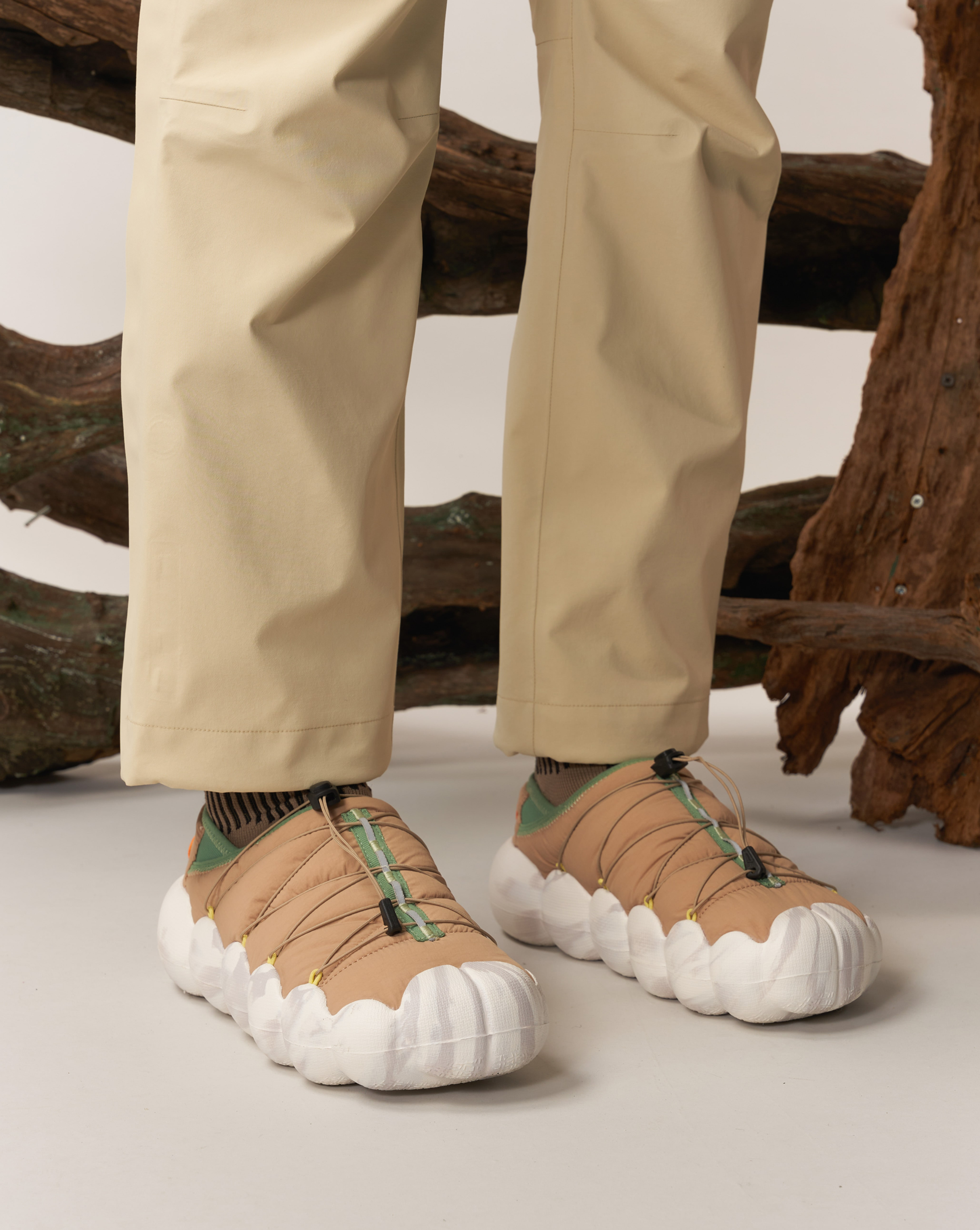 The camping shoes are inspired by air cushion boats and made with supercritical bio-based physical foam material, coupled with ORTHOLITE® high-elastic and ultra-light insoles, THERMOLITE® Insulation, and Swiss Sanitized professional antibacterial technology, creating environmentally friendly and comfortable footwear products.