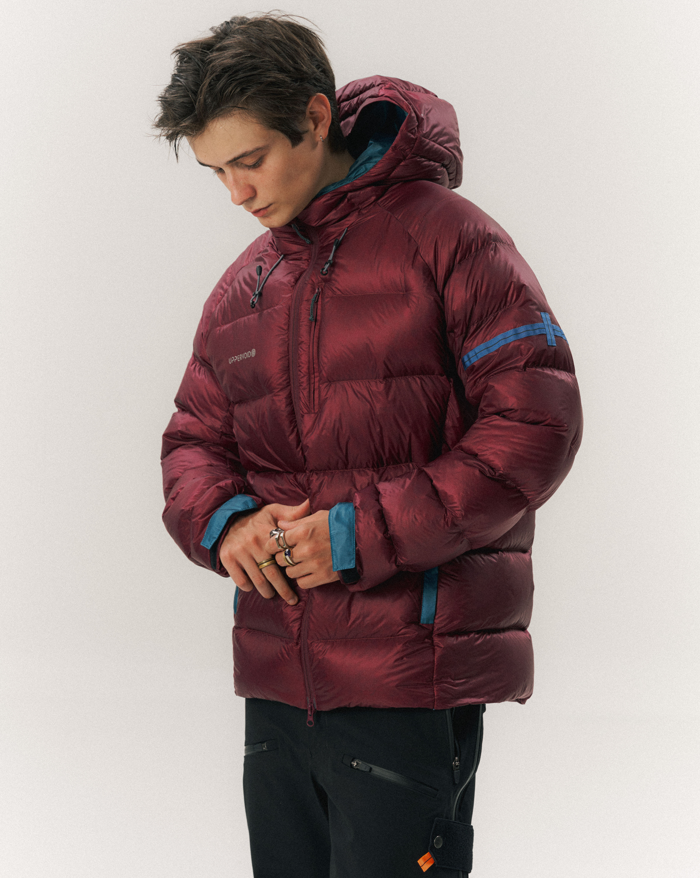 This hooded down jacket is made with TORAY AIRTASTIC™ 7D ultra-light fabric, filled with 800PF goose down, providing lightweight warmth. 3D baffle construction ensure a comfortable fit. The heat retention temperature regulation function, enhance the insulation effect. The multi-pocket design and INWARD™ ultra-compact self-storage feature offer additional convenience for storage.
