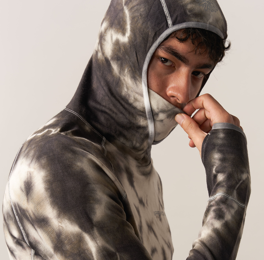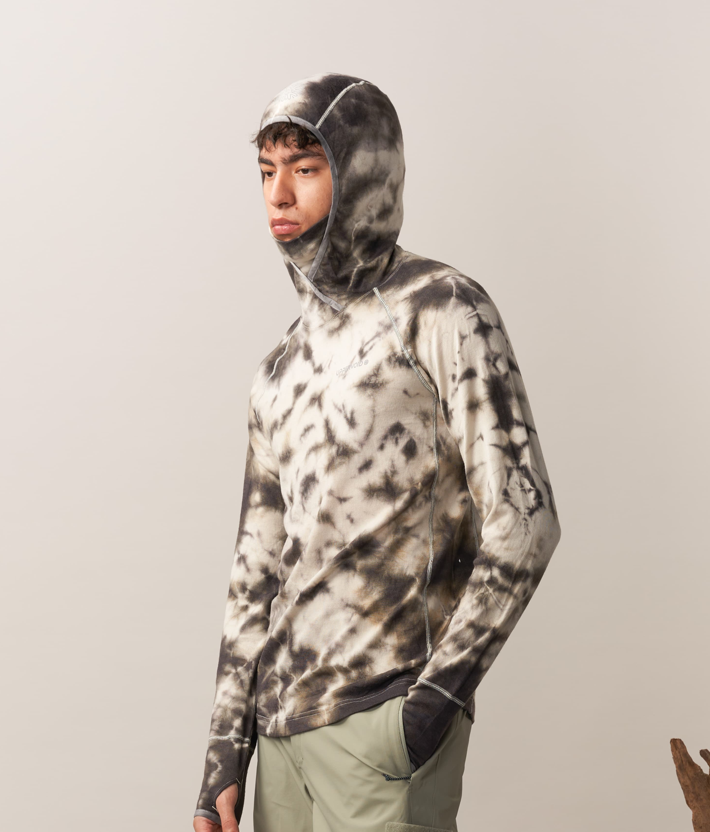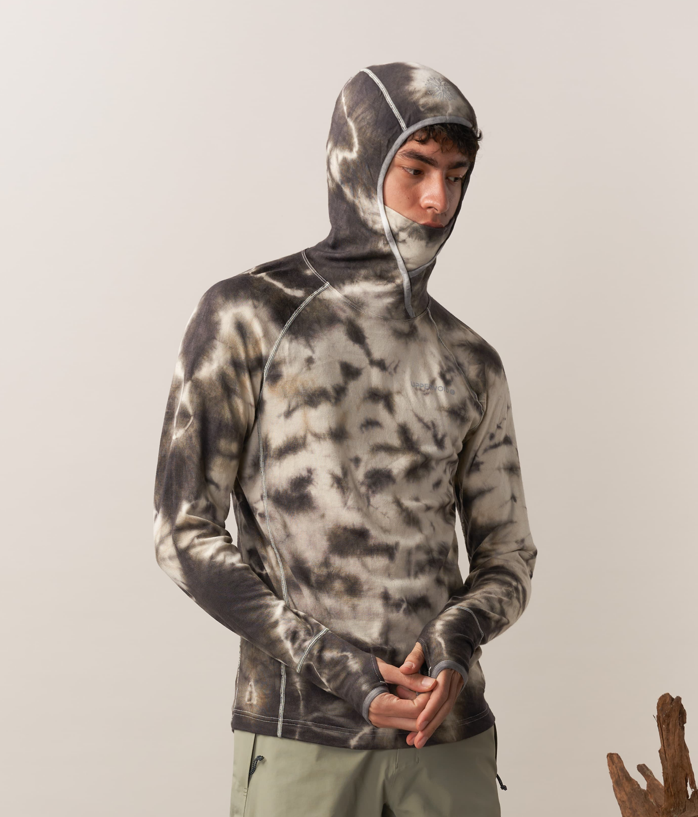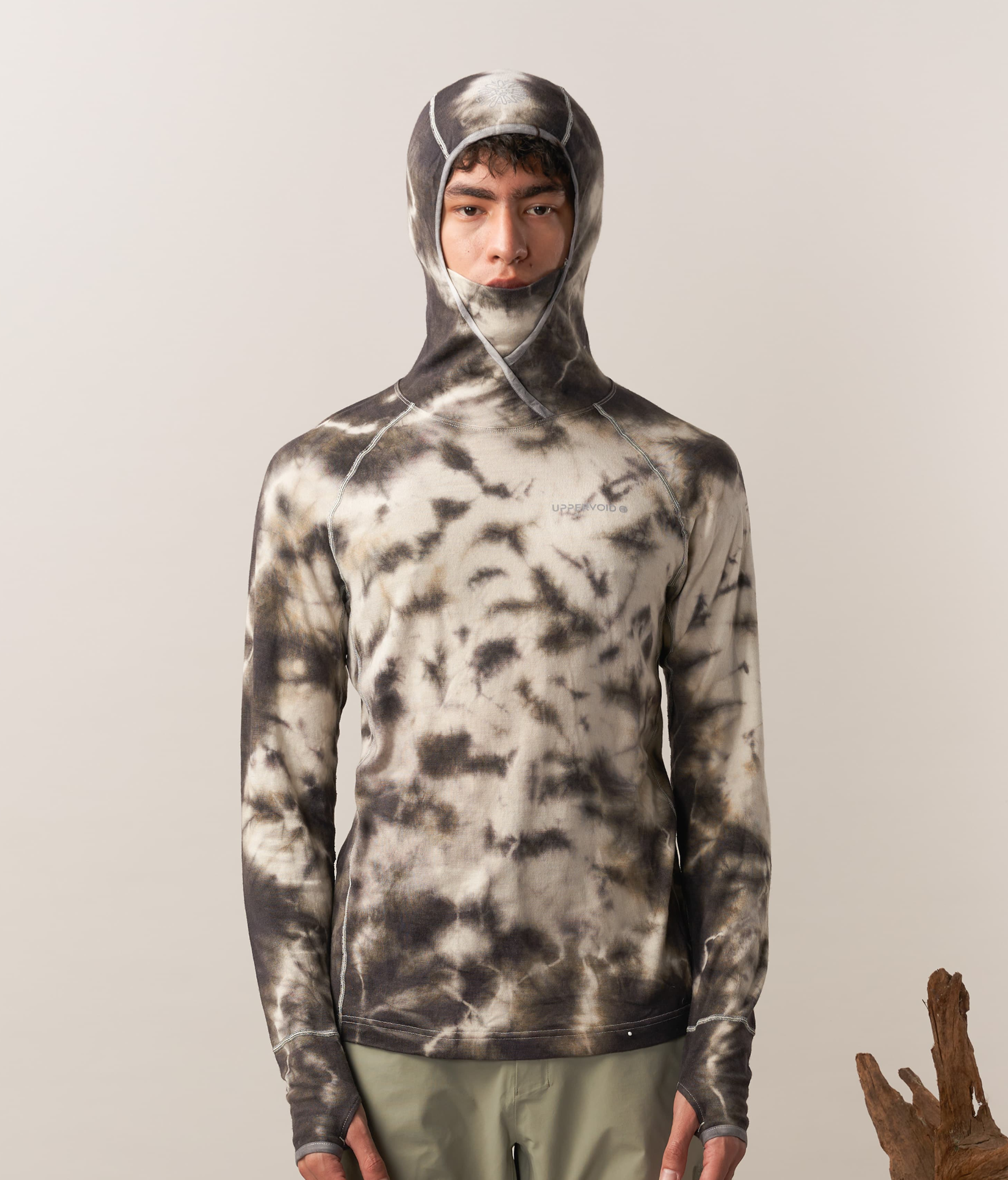 The METHUSE260++ hooded wool base layer is made from 100% 260GSM 18.5µm wool, providing thermal regulation, moisture wicking, natural antimicrobial and anti-odor properties, and is machine washable without losing elasticity. The hooded design allows for more complete insulation during colder climates.Piece dyed with BloomGEM bio-base dye, each piece is unique.