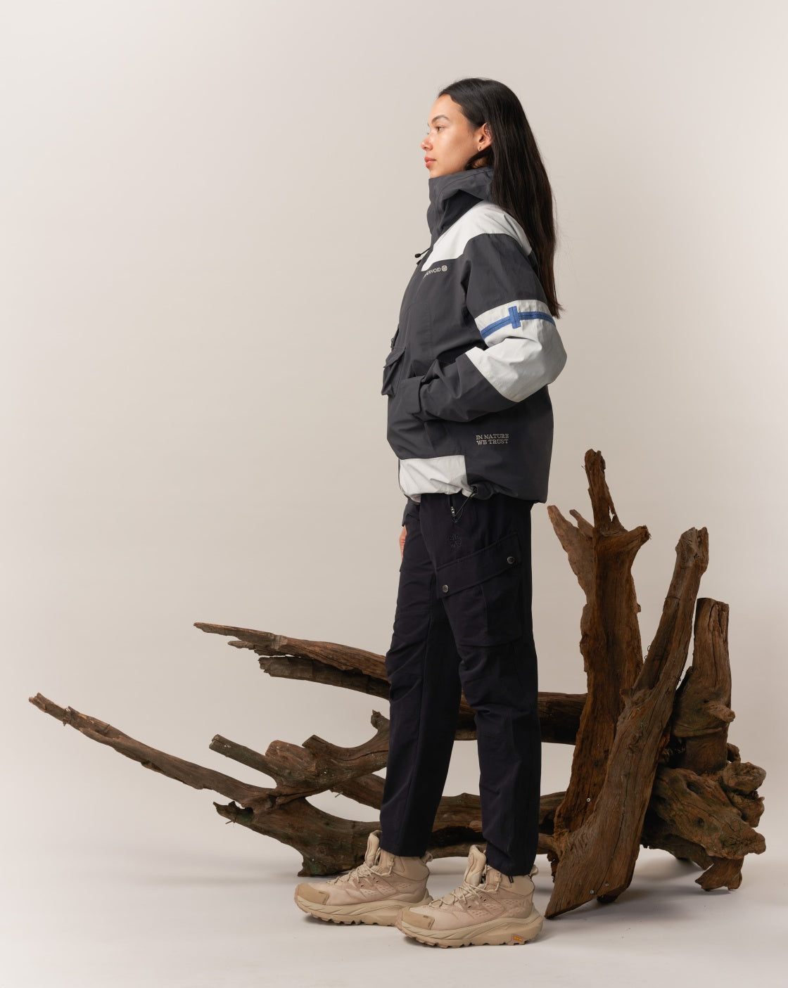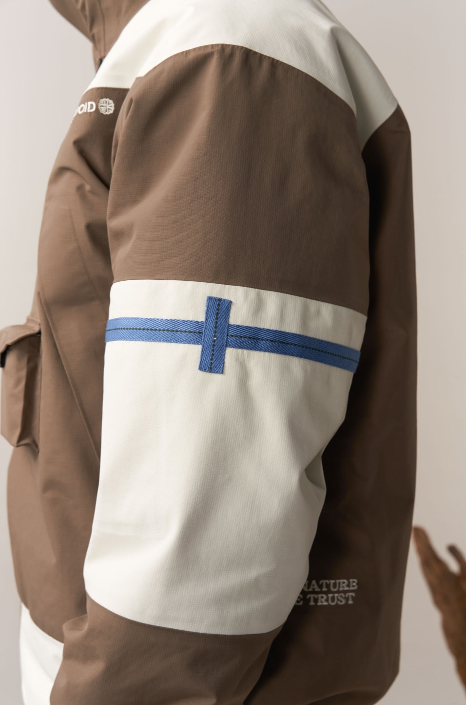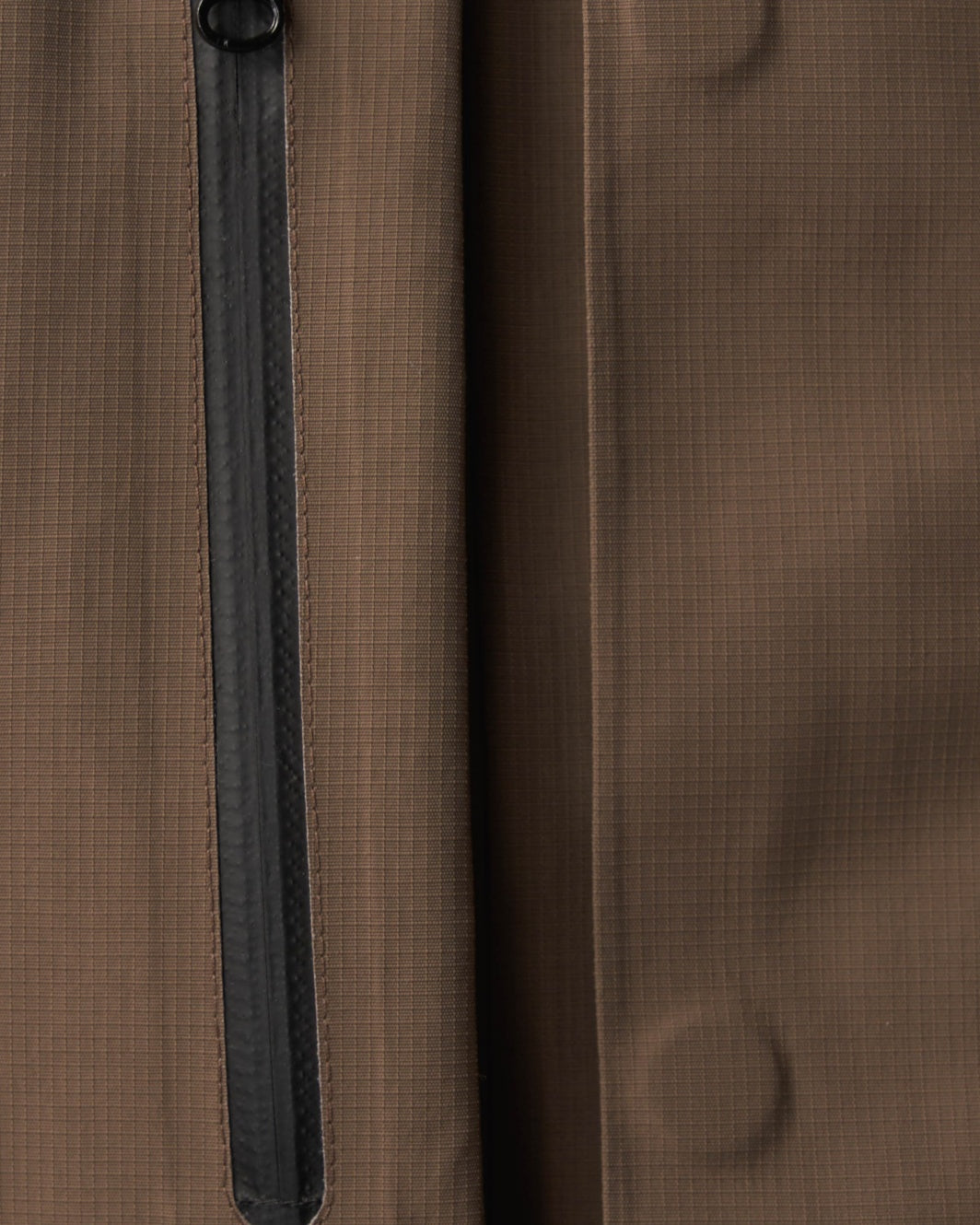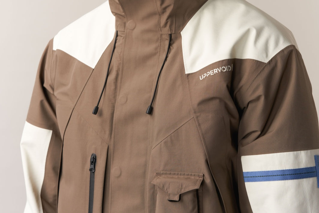 The shell uses GRATE™ 3-layer composite fabric of nylon grid, with PORELLE® P620 MEMBRANES high-transparency biomimetic film, providing 21,000MMH₂O waterproof and 9,000G/M²/24H breathability, and features DWR for robust water resistance.