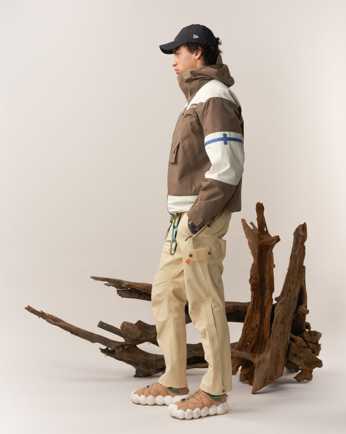The shell uses GRATE™ 3-layer composite fabric of nylon grid, with PORELLE® P620 MEMBRANES high-transparency biomimetic film, providing 21,000MMH₂O waterproof and 9,000G/M²/24H breathability, and features DWR for robust water resistance.