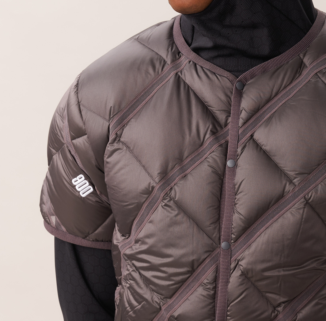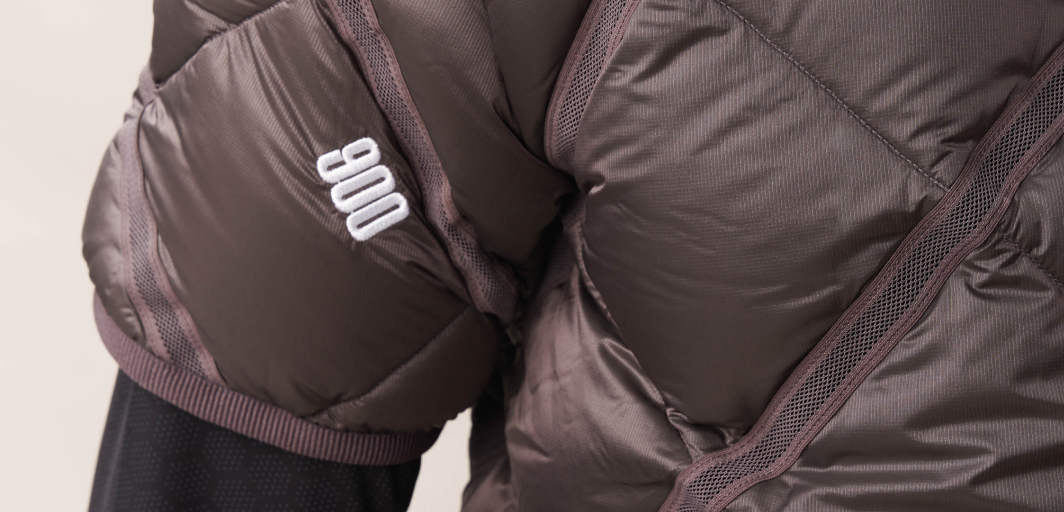 900FP goose down, suitable for extreme cold (-20℃ to -50℃) outdoor use, providing lightweight warmth.