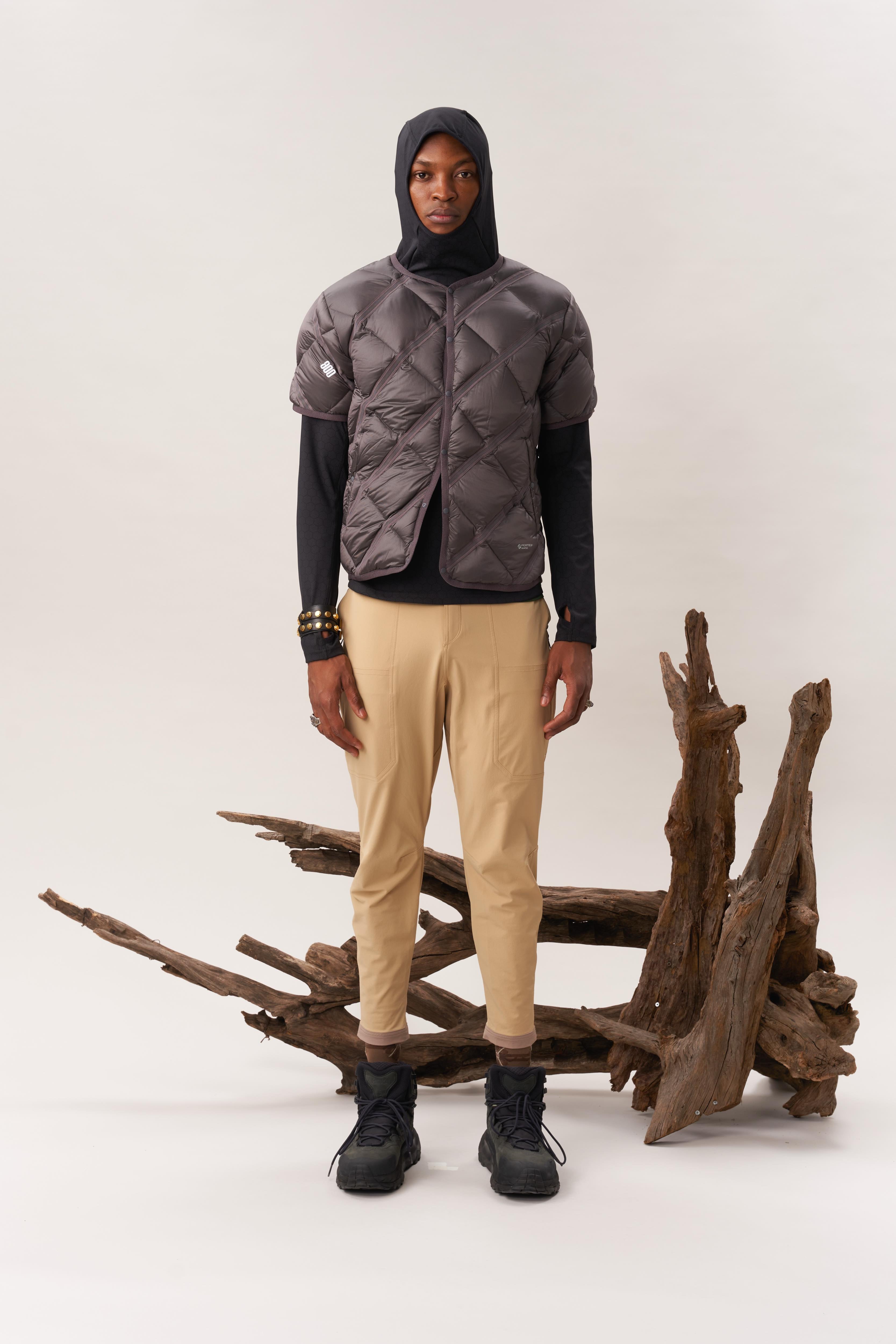Pertex® Quantum is a lightweight, waterproof, and windproof fabric known for its high density, durability, and tear resistance. The ultra-thin material is easy to store and has good breathability. It's filled with 900-fill white goose down to provide continuous warmth and protection.