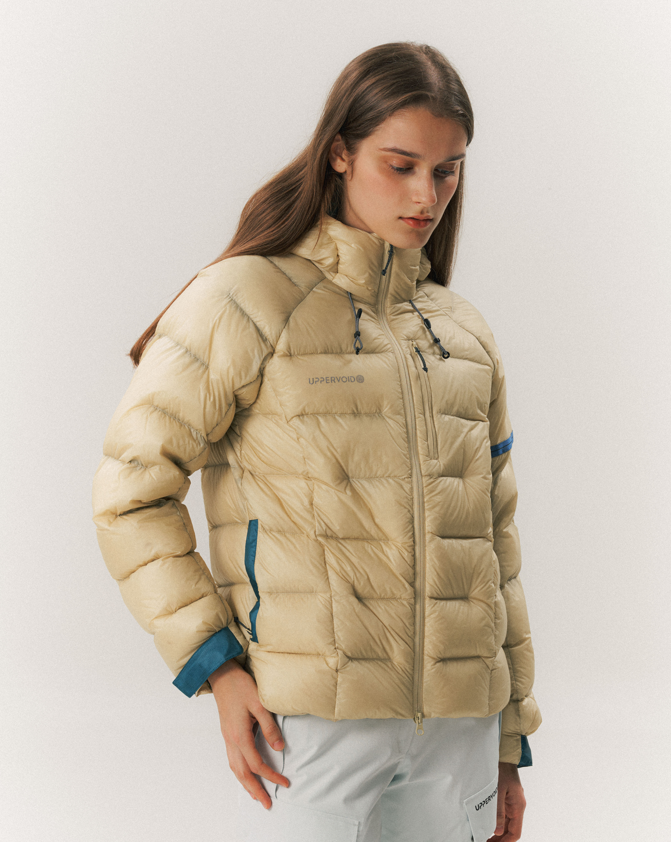 Featuring -TORAY AIRTASTIC™ 7D ultra-light fabric and filled with 800PF goose down, it offers ultimate lightness and warmth. The exclusive GLANDEN™ ergonomic design and 3D box quilting construction ensure a comfortable fit. The 3D silhouette and body-fitted curvilinear contouring, along with the heat retention temperature regulation function, enhance the insulation effect. The multi-pocket design and INWARD™ self-storage function provide additional convenience for storage.