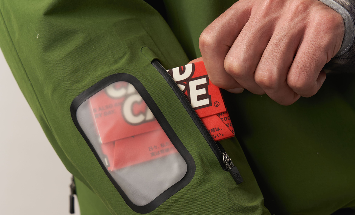 MULTITASKING™ design, PORTHOLE™ arm pocket, DEEPVOID™ large back pocket, GRAVILOCK™ earphone attachment.