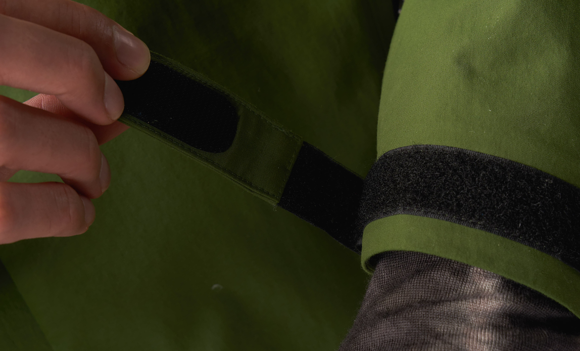STOWABLE HOOD ADJUSTABLE, GRASP™ cuff velcro, SHINDO adjustable straps, HEM FASTENER bottom hem adjustment.