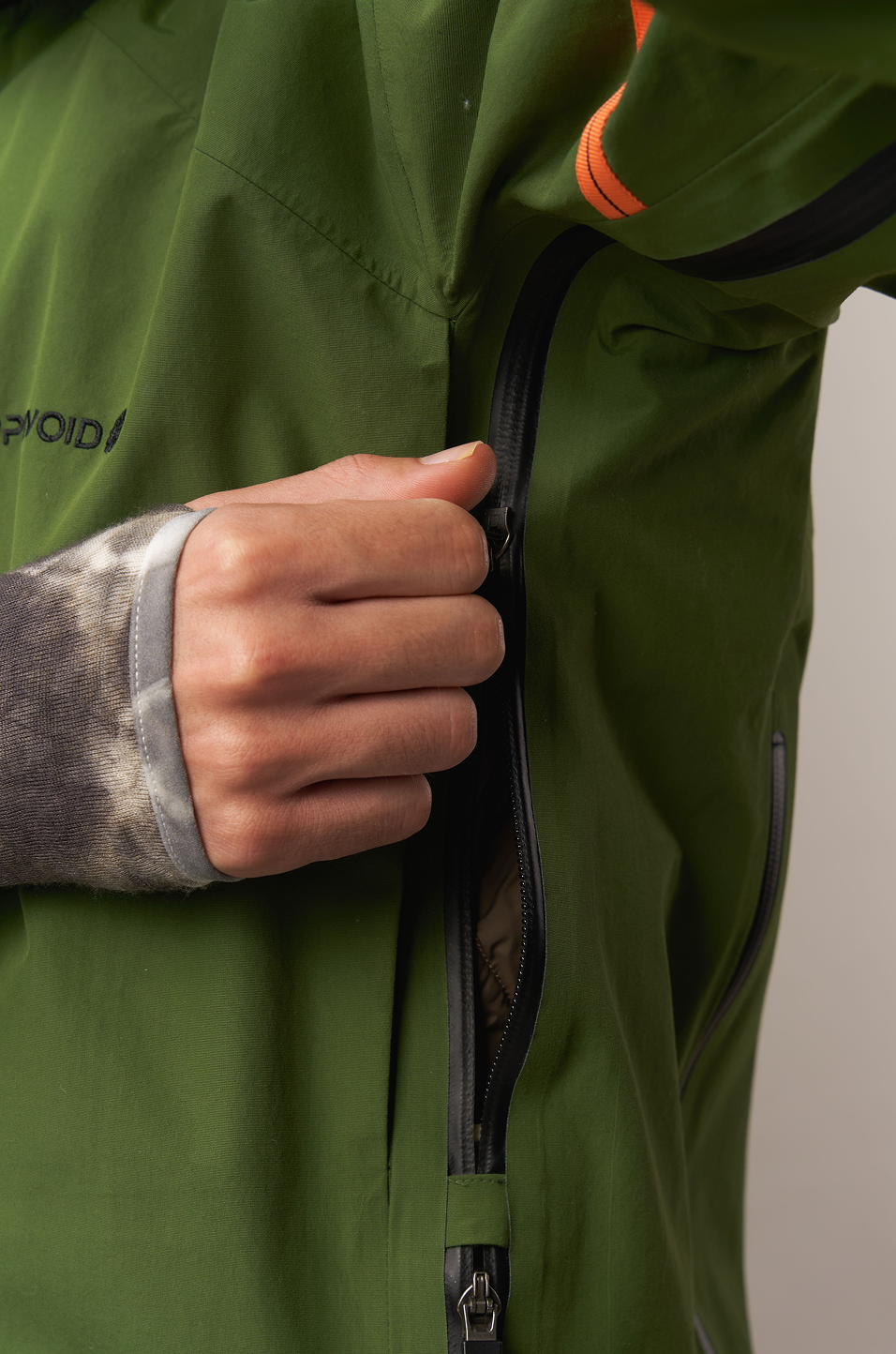 VOIDTECH™ SHH 3-layer fabric: 10,000MMH₂O waterproof, 10,000G/M²/24H breathability, DWR for strong water repellency. YKK® AQUAGUARD® underarm zippers resist wind.